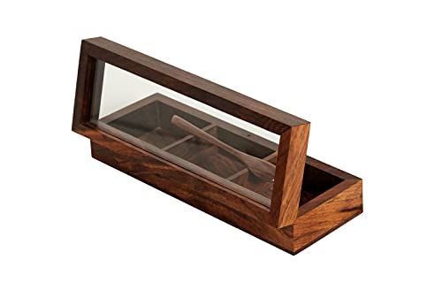 Ortus Arts® Mango Wood Spice Share Box with Iron container and lid with brass Plating for Tabletop/Masala Dabba Spice Rack Holders/Container Wooden Masala Box for Kitchen Masala Dani